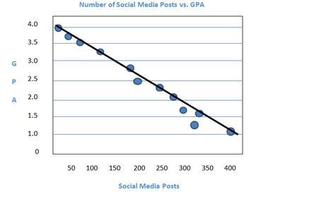 The slope represents the change in the GPA per post. It is negative because as the number of posts increases, the GPA decreases.