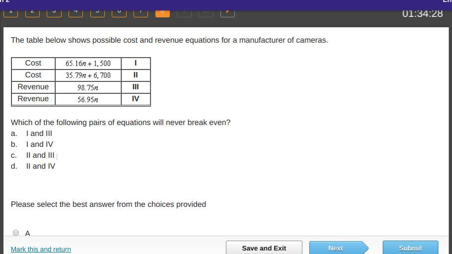 Which of the following pairs of equations will never break even?