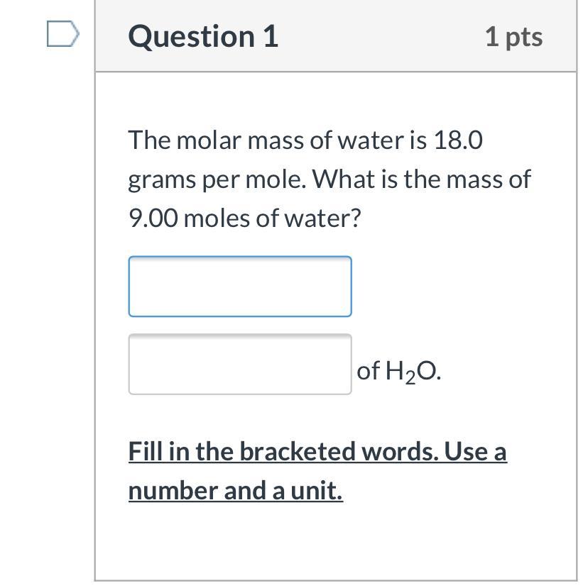 The molar mass of water is 18.0 grams per mole. What is the mass of 9.00 moles of water?