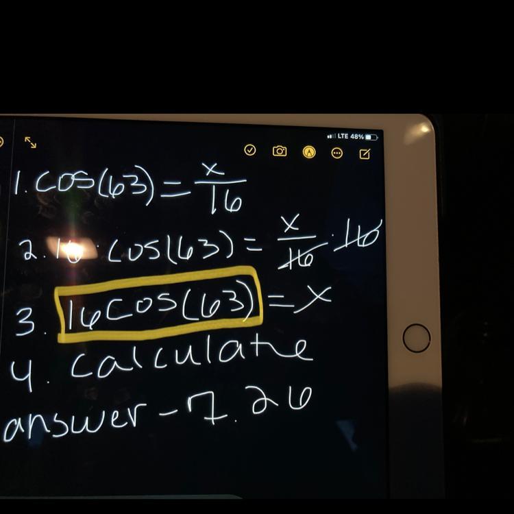 Okay so we are going to use Cos for this equation since this is Adjacent/hypotenuse.