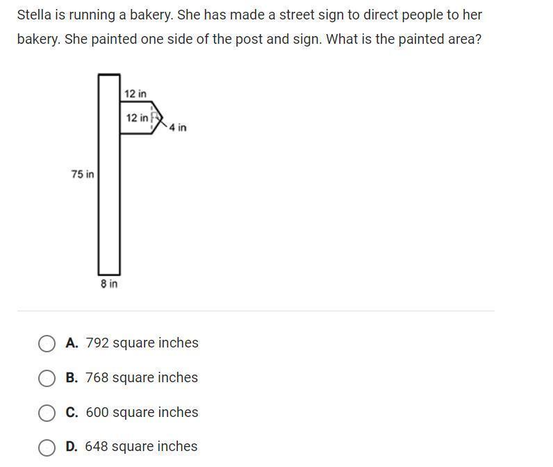 Total area of the painted part of the street sign = Area of the rectangle + Area of the square + Area of a triangle