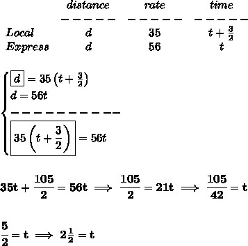 Local say "L" is going at a speed of 35mph...ok... and Express or "X" is going at 56mph.