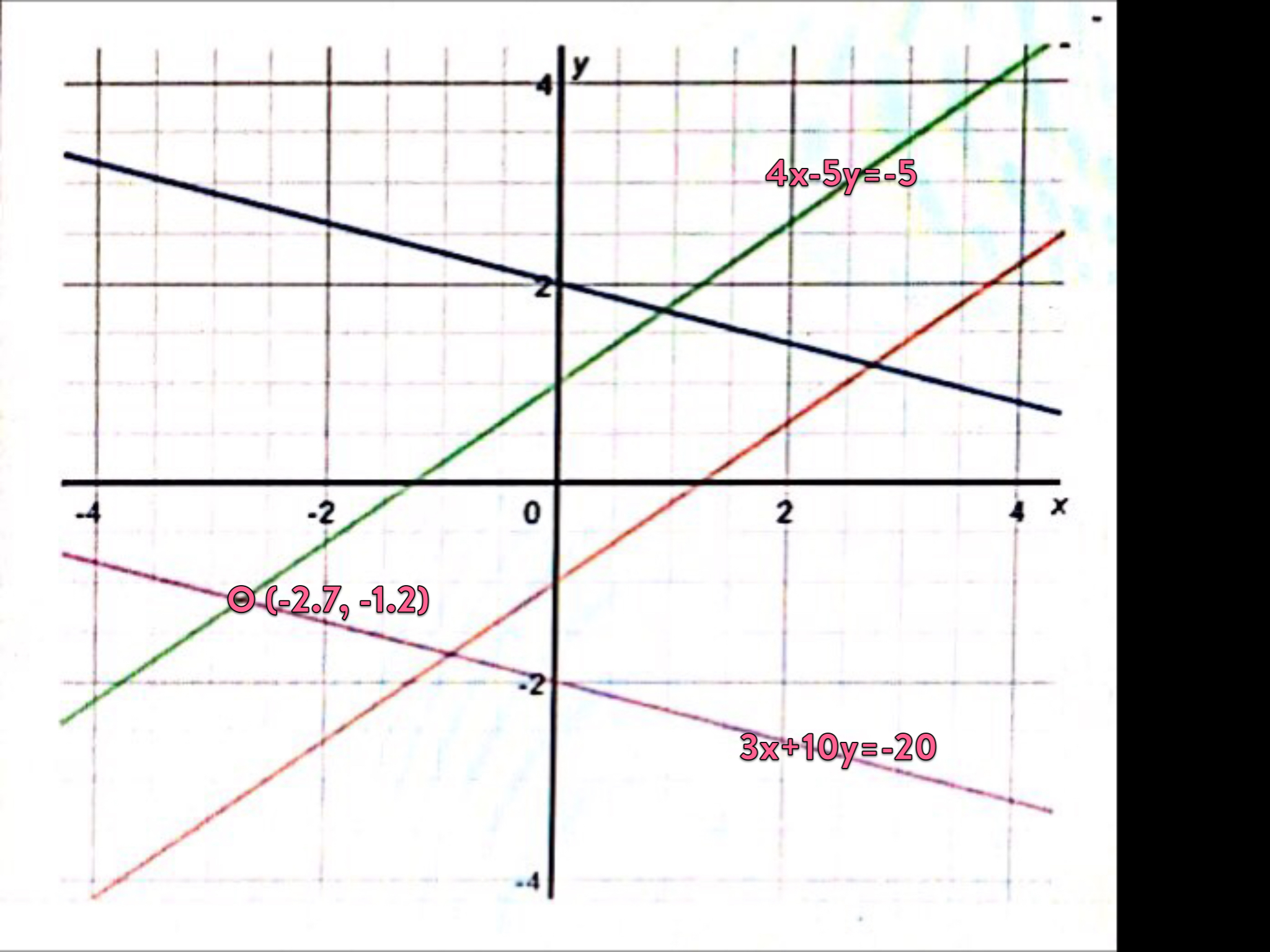 A. 4x - 5y = -5 and 3x + 10y = -20
