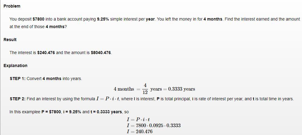 It is given that, $7,800 at 9.25% for 4 months