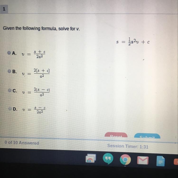 v=2(s-c)/a^2