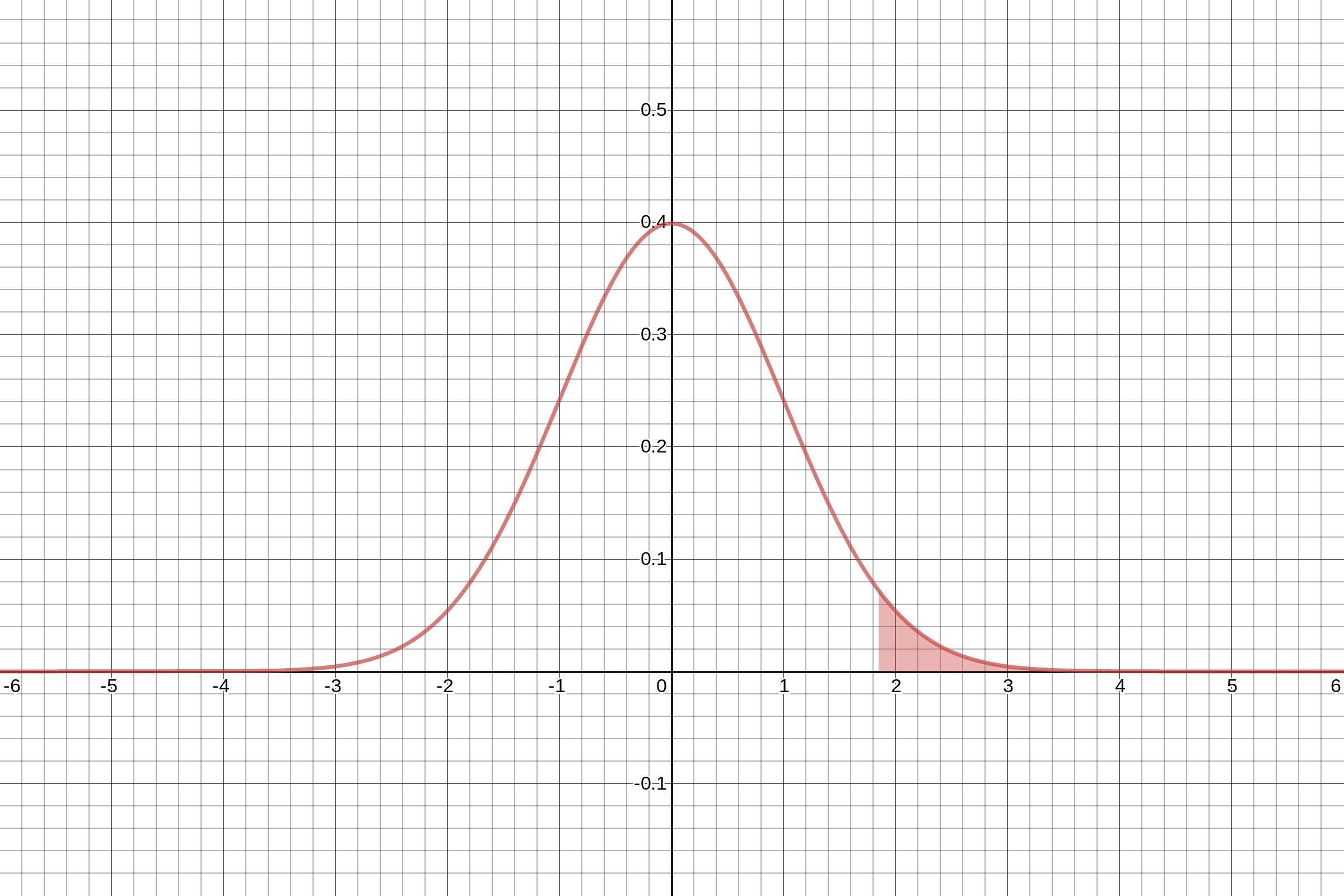 The graph below shows a standard normal distribution with the area that represents P(Z>1.85) = 0.03216.