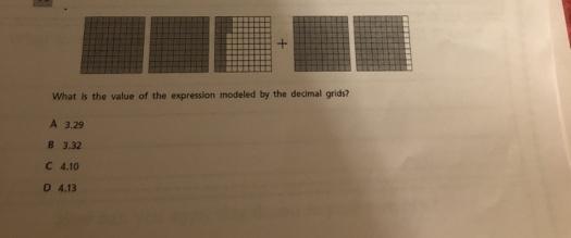 The value of the expression modeled by the decimal grids is 4.13