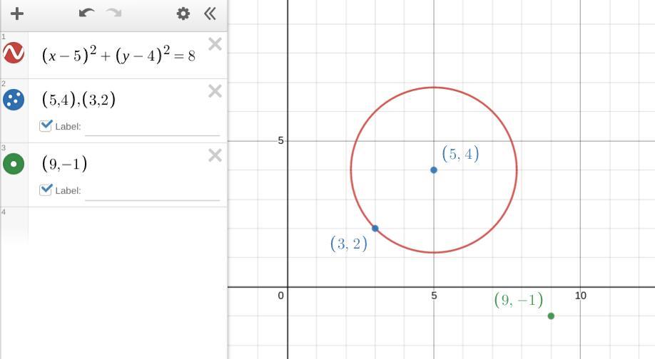 r² = (3 -5)² +(2 -4)² = 4 + 4 = 8