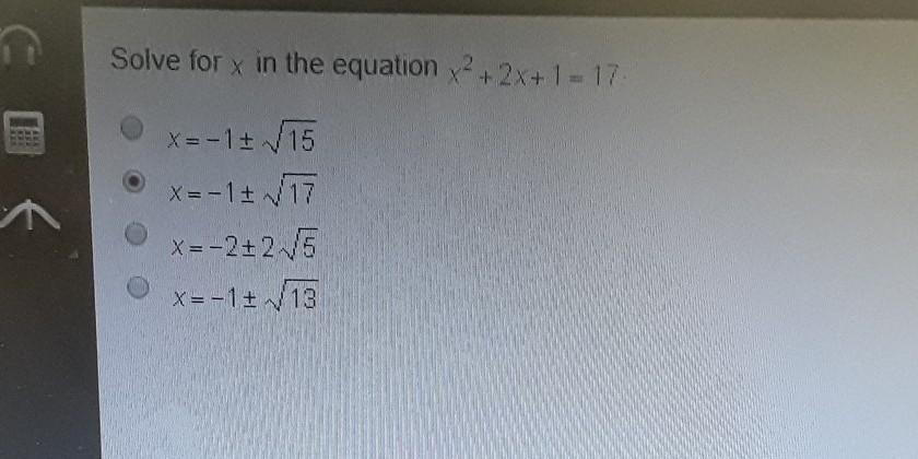 So your equation is actually x^2+2x+1=17