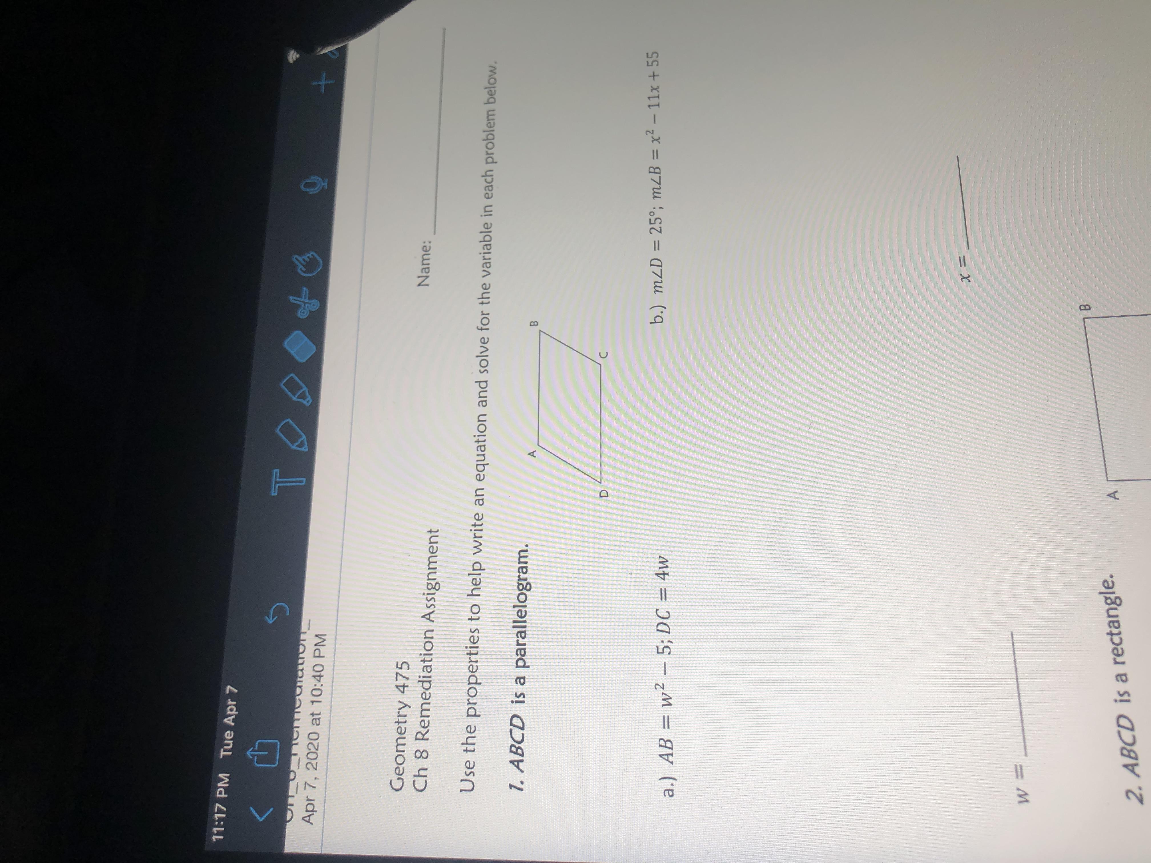 It then givs you the measure for AB and DC, so you know they are equal