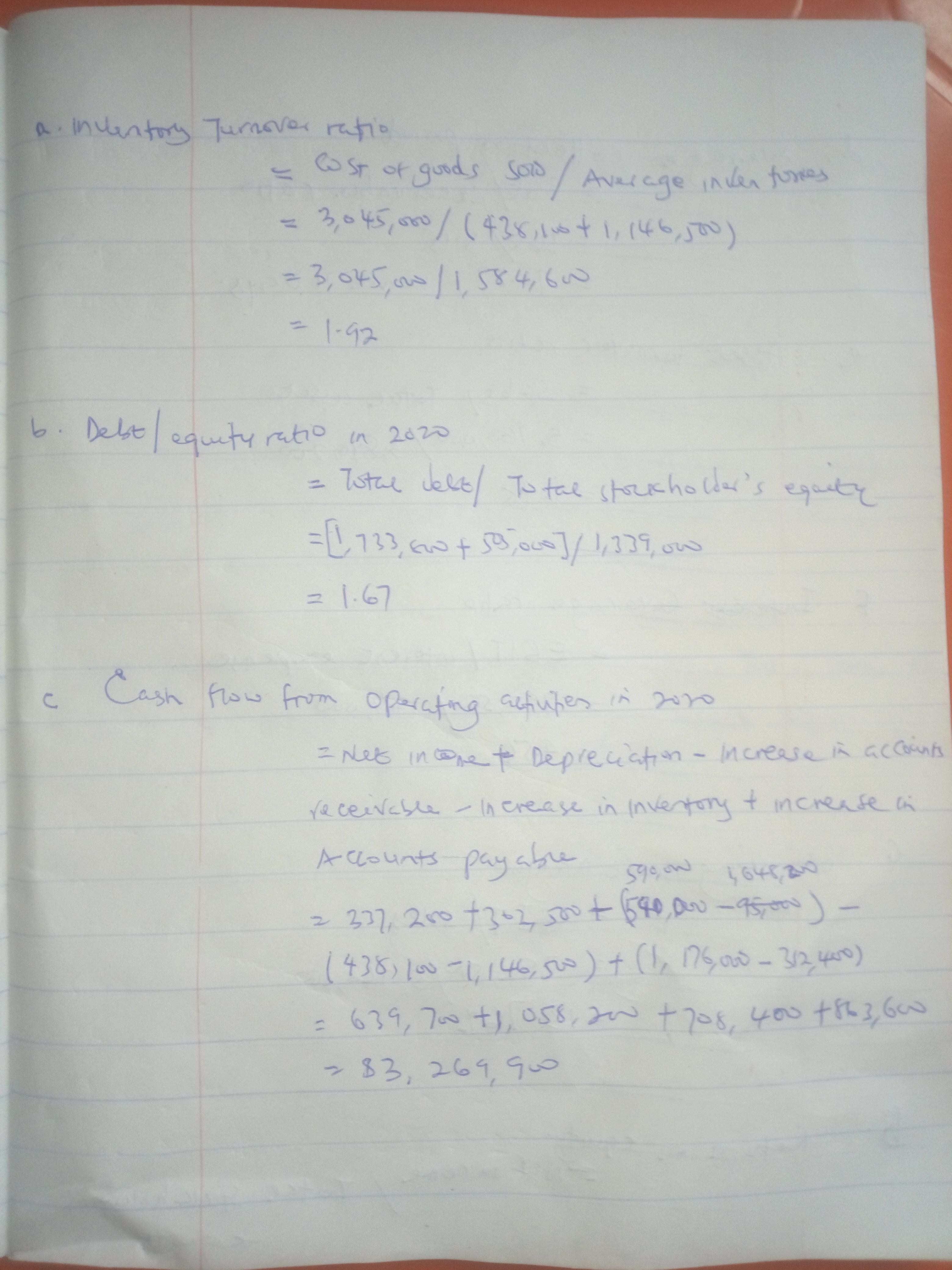 b. Debt/equity ratio in 2020