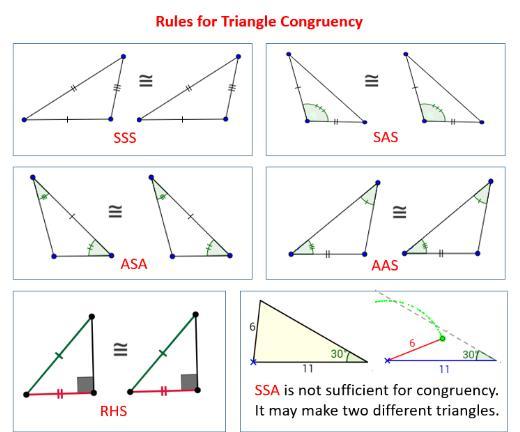 There are only 5 ways to prove triangles congruent, which you can see in the attached image.
