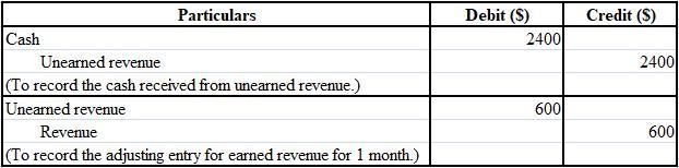 Thus, journal entry on receipt of cash as well as adjusting journal entry has been shown below: