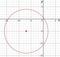 The graph of the circle below has its centre at (-7, -5) and radius 9.