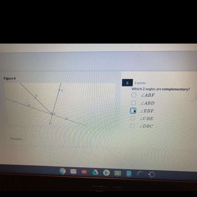 I looked up complementary angles and it said "Two angles are called complementary when their measures add to 90 degrees." and it looks like those 2 would be it!