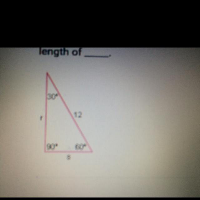 In the 30-60-90 triangle below, side s has a length of ____ and side rhas a length of