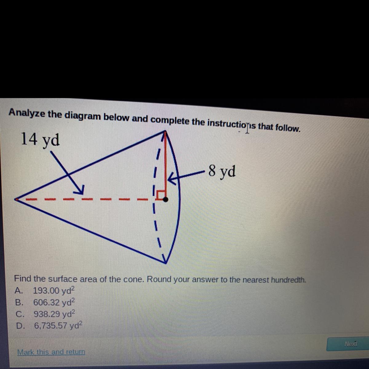 l = √(r²+ h²) = √8² + 14² = 16.12