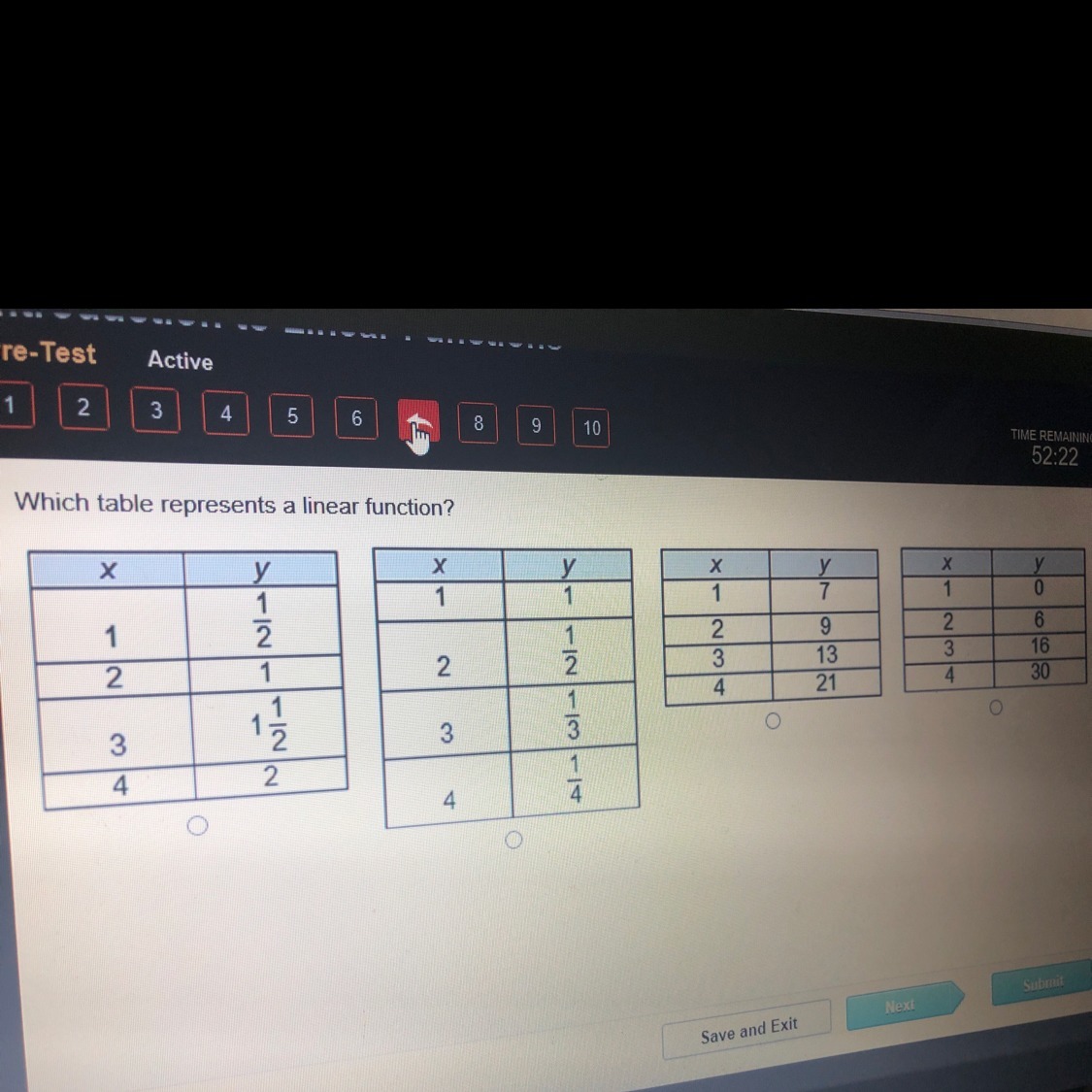 Which table represents a linear function?