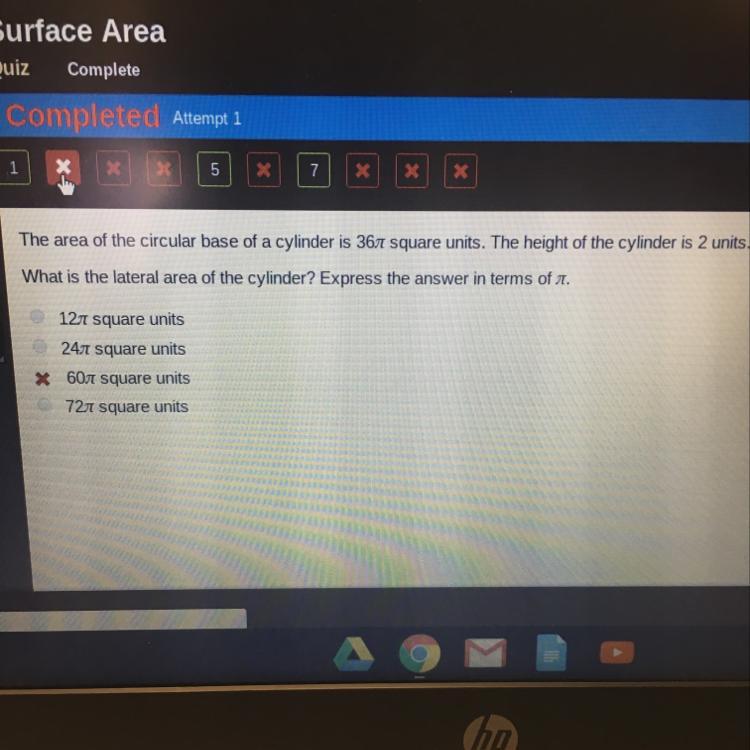 L = 2 * π * 6 * 2 = 24π, second choice listed