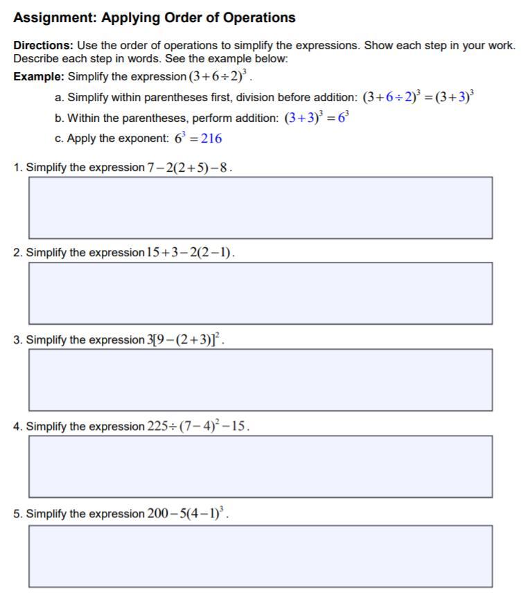 5. 200 - 5(4 - 1)^3 = 200 - 5(3)^3 = 200 - 5(27) = 200 - 135 = 65