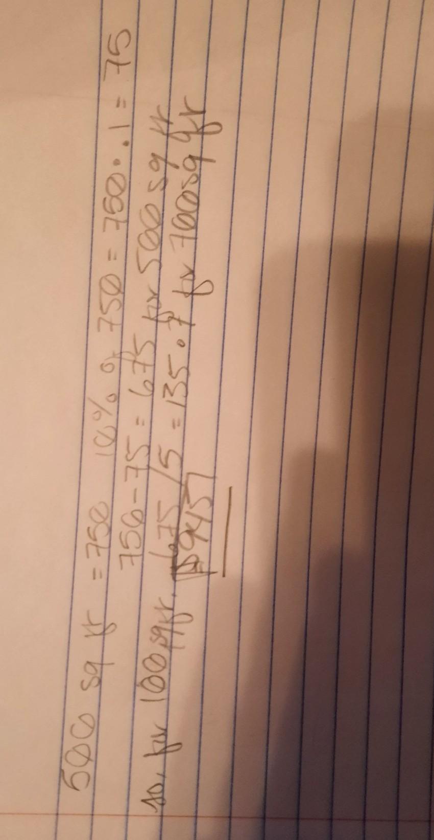 find 10 percent of 750 and subtract it from 750. then you divide by 5 to get how much it would cost for 100 and then multiply that by 7 to get 700 square feet being 945 dollars