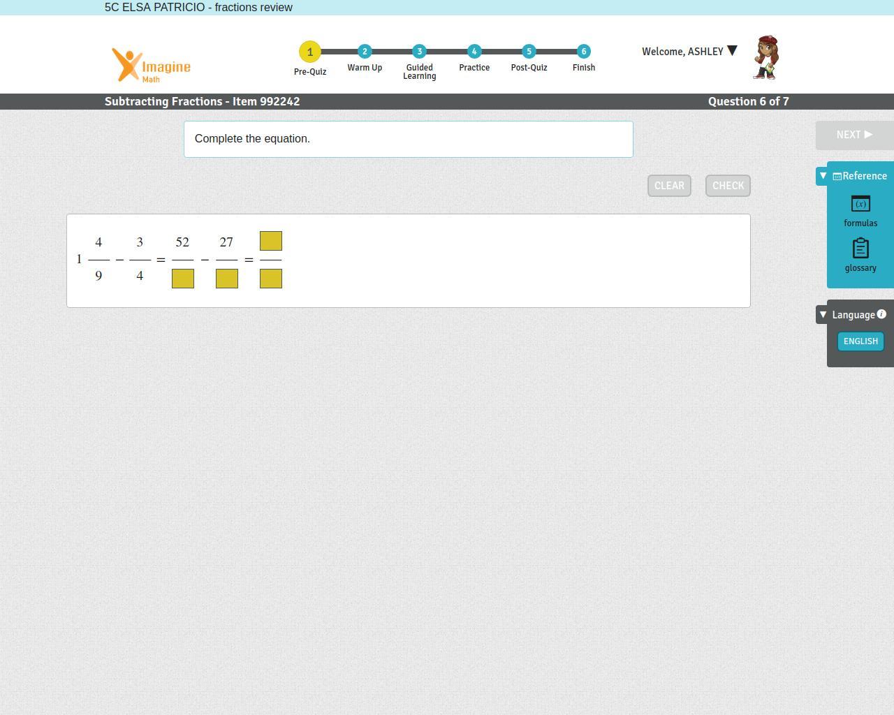 We need to solve the equation: 1\frac{4}{9}-\frac{3}{4}