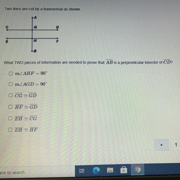The two pieces of information are needed to prove that line AB is a perpendicular bisector of line CD are: