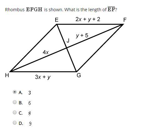 EF = 2x + y + 2 = 2(2) + 3 + 2 = 4 + 3 + 2 = 9 → D
