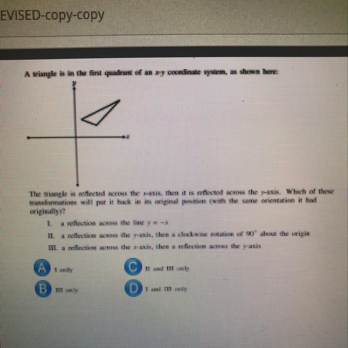A triangle is in the first quadrant of an x-y coordinate, shown here