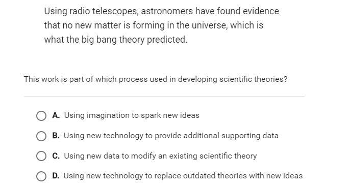 Using radio telescopes, astronomers have found evidence the new matter is forming in the universe, which is what the big bang theory predicted.