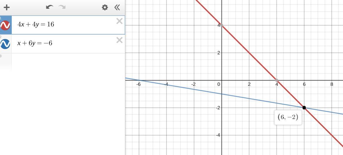 So, the solution is (x, y) = (6, -2).