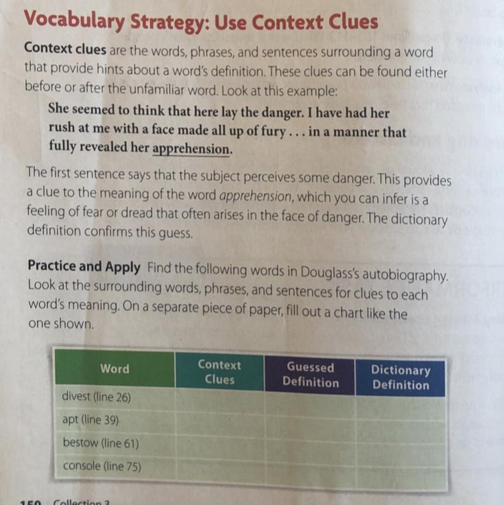Context Clues: She was an <u>apt</u> woman; and a little experience soon demonstrated, to her satisfaction, that education and slavery were incompatible with each other.