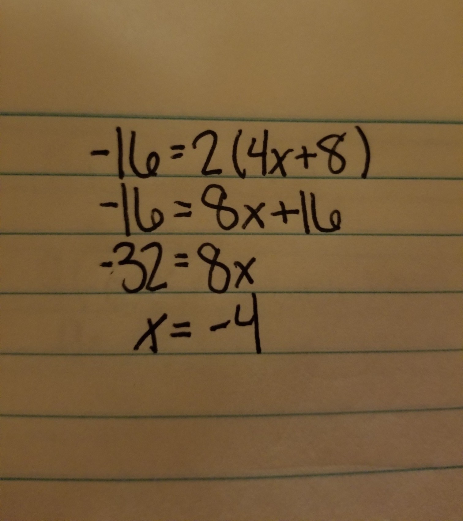 How to do this - 16 = 2 ( 4x + 8 )