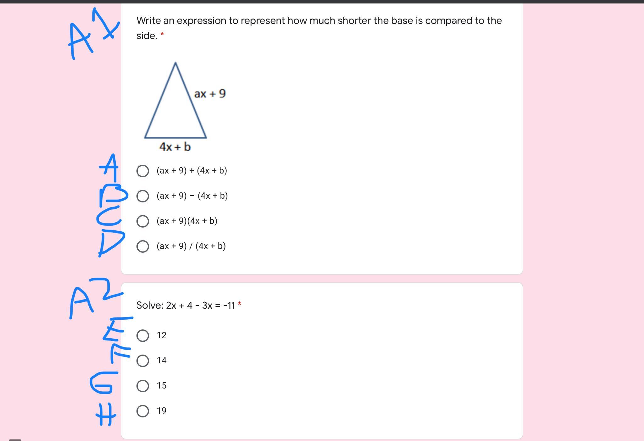 giving x = 21.