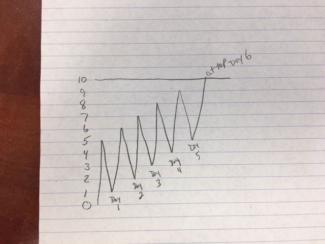 Let's consider this! So, if the frog were to start from the bottom of the well, and the well is 10. . . . .