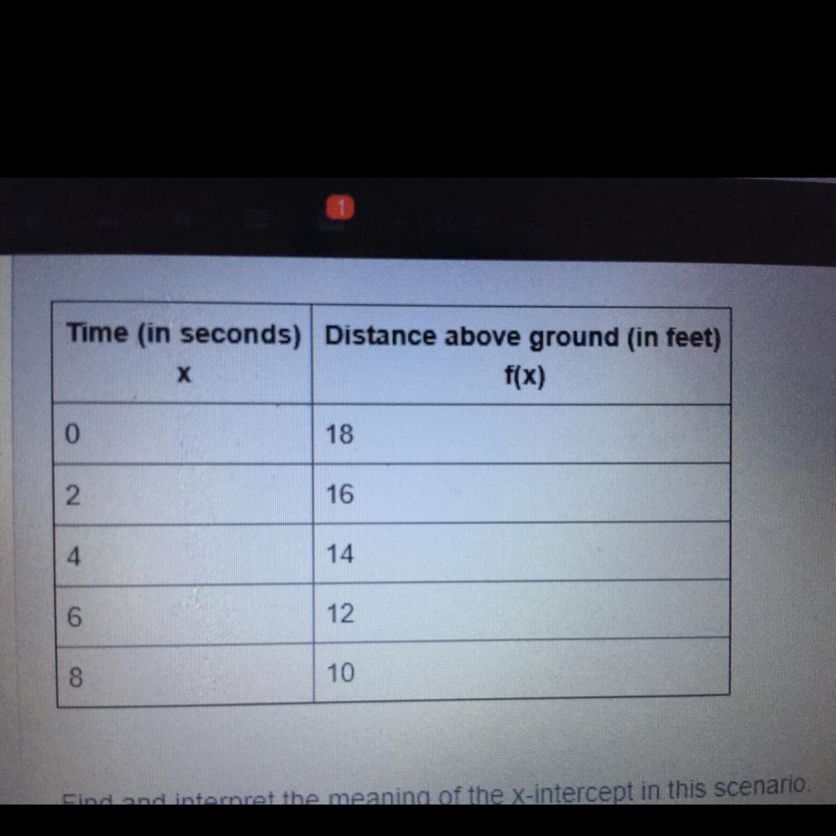 Therefore, the required x-intercept is (18, 0) and is shows that the time taken by the helicopter to reach the ground is 18.
