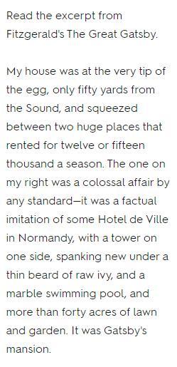 Fitzgerald uses setting in creating the atmosphere and establishes the geographical context to suggest the conflicts in the excerpt.