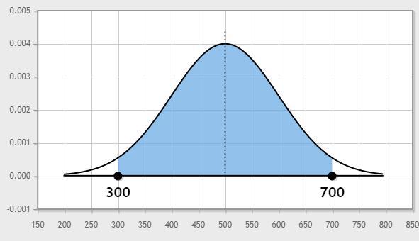 P ( 300<X<700 )=P ( −2<Z<2 )