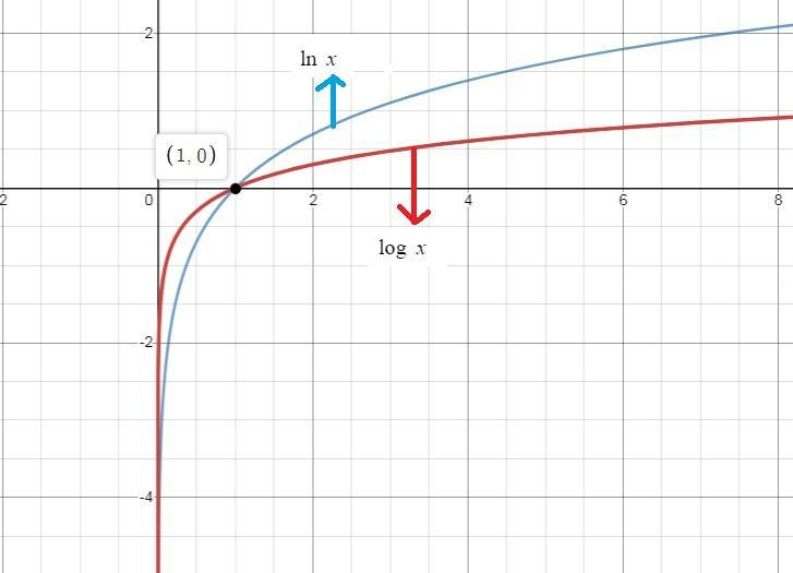 The major difference between them is to be that the y-values in the natural log graph increase at a faster rate than the y-values for the common logarithm graph.
