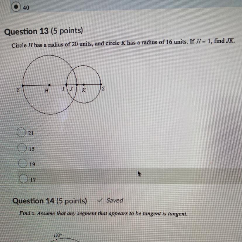 If the radius of K is 16, and the length of IJ is 1, then the length of JK has to be 15, since 15 + 1 = 16