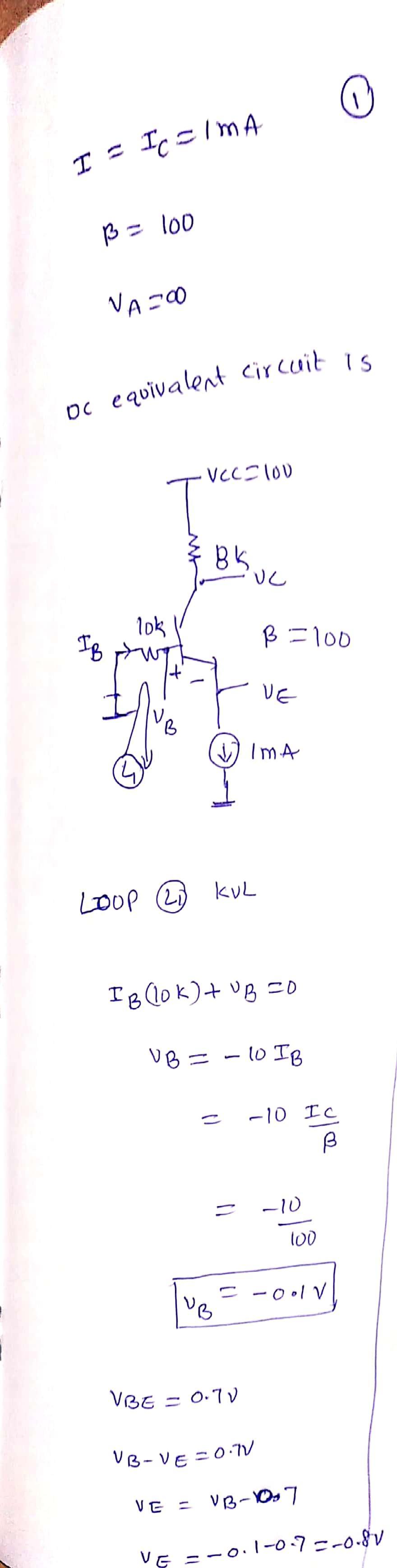 The transistor is biased with a constant current source ???? = 1mA and β = 100. a) Neglecting the early effect, find the dc volt