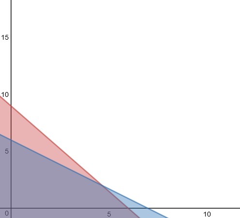 Using the following system of inequalities find the maximum value of f(x,y) = 3x + 5y x≥0x≥0 y≥0y≥0 3x+2y≤183x+2y≤18 6x+7y≤426x+