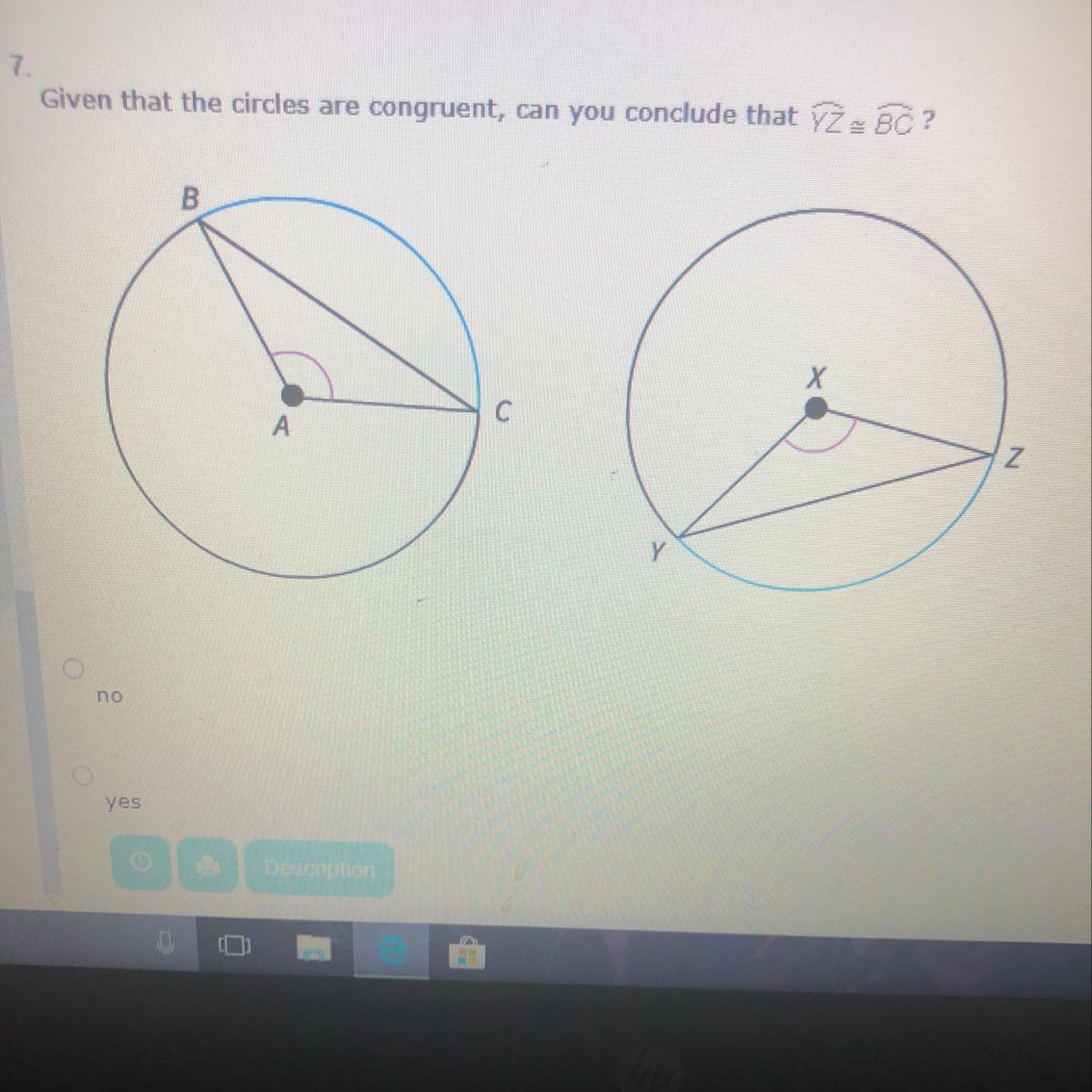 Given that the circles are congruent, can you conclude that YZ=BC?