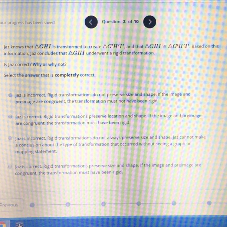 Option C is the right answer as figure B is formed when figure A was translated 8 units right and 6 units up.
