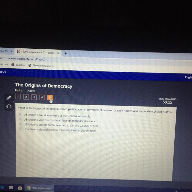 What is the biggest difference in citizen participation in government between ancient Athens and the modem United States?