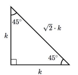 Attached is a diagram of the triangle. Both the base and the height are the same, so the 14 foot-long ladder is the hypotenuse.