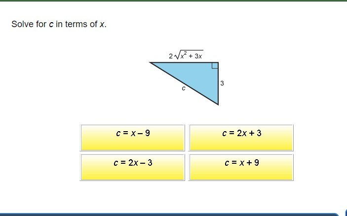 The Pythagorean theorem states that the sum of the two legs squared equal the hypotenuse squared