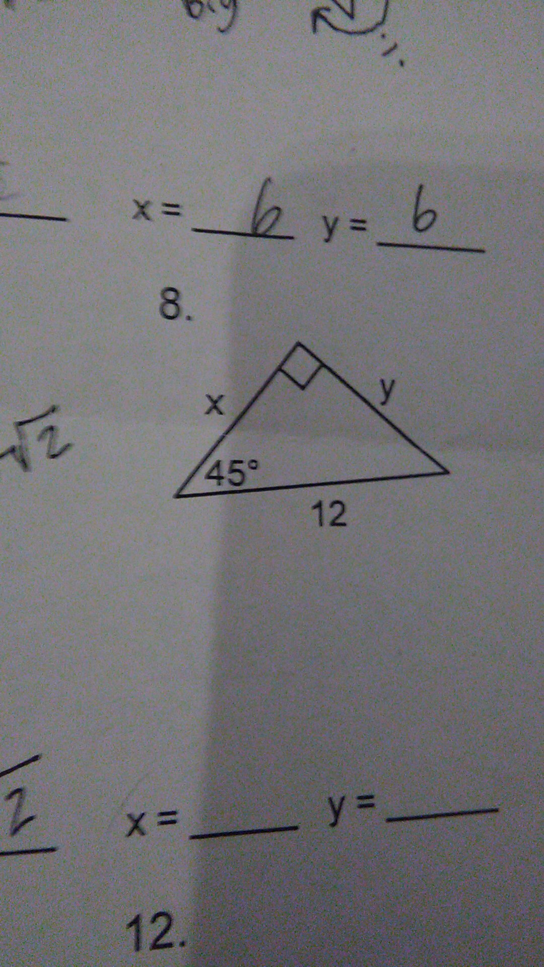 i have a special right triangle homework assignment but its to hard for me and i need help on answer this question