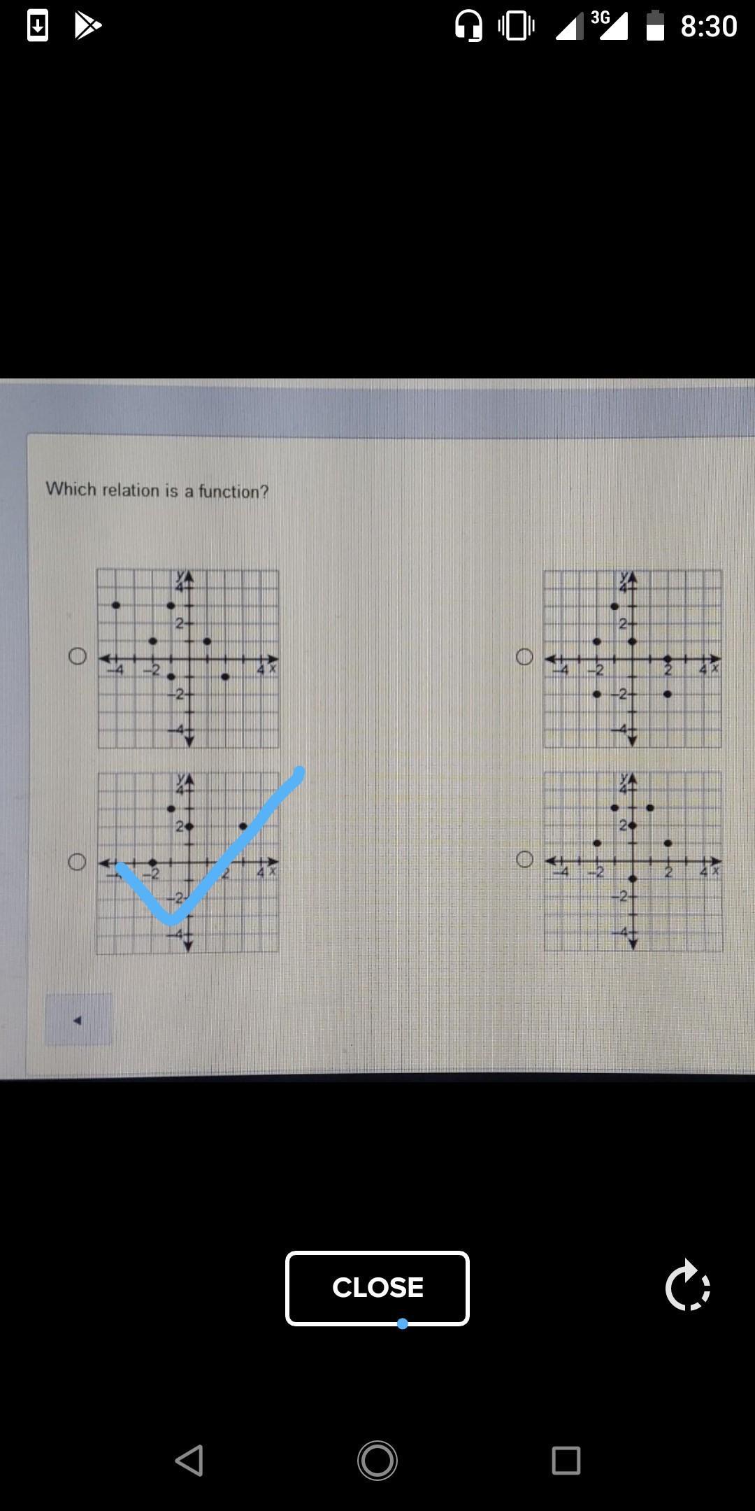 The relation that is a function is the one whose graph will pass the vertical line test.