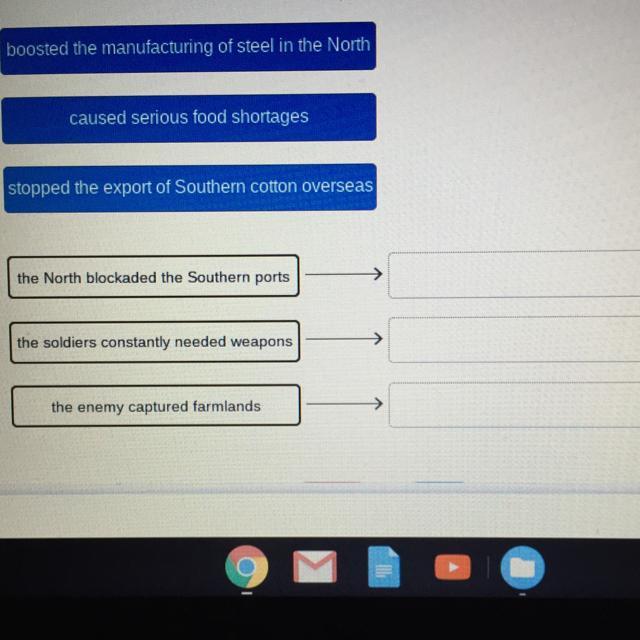 Match each cause with the correct effect during the Civil War 40 POINTS!!!!